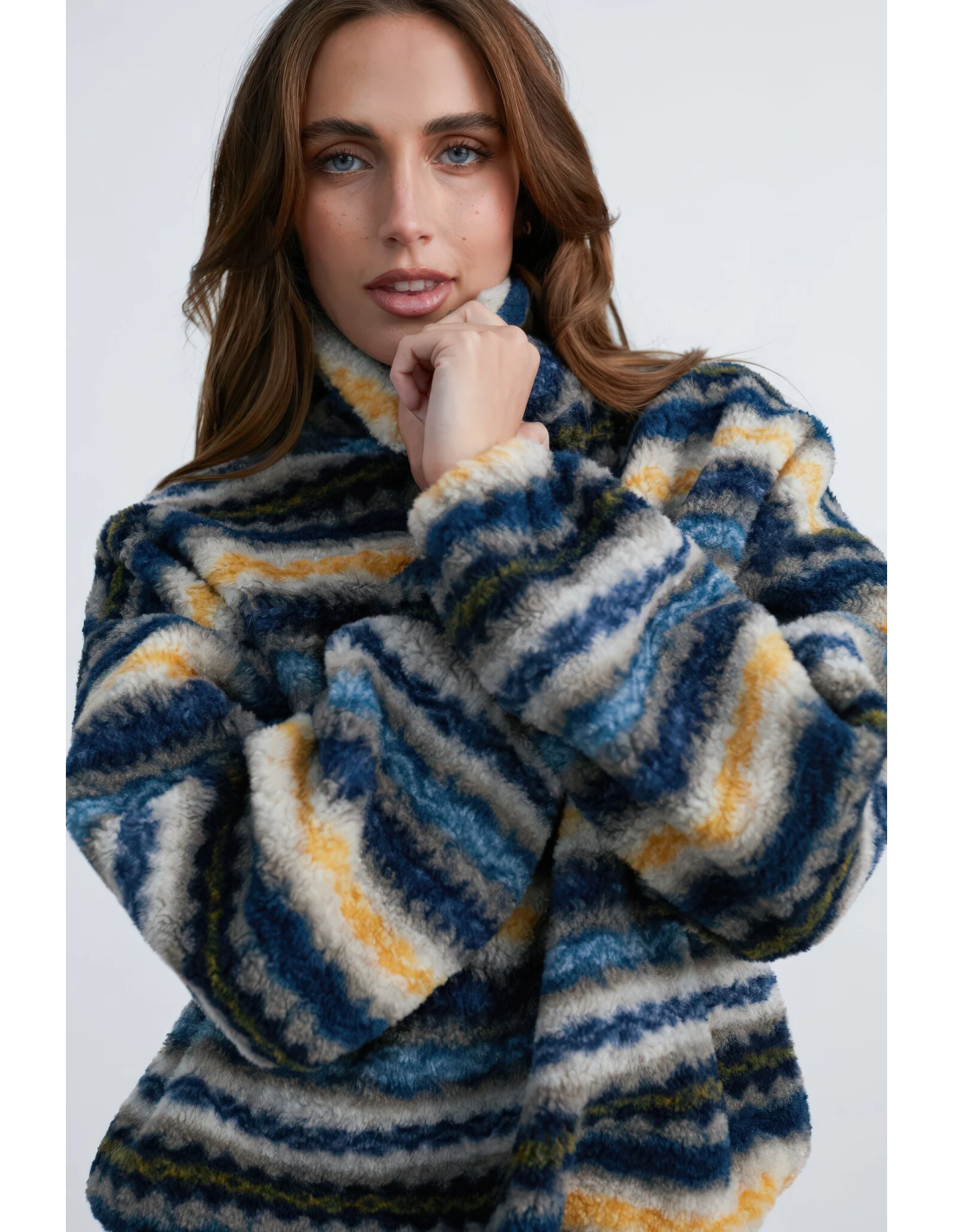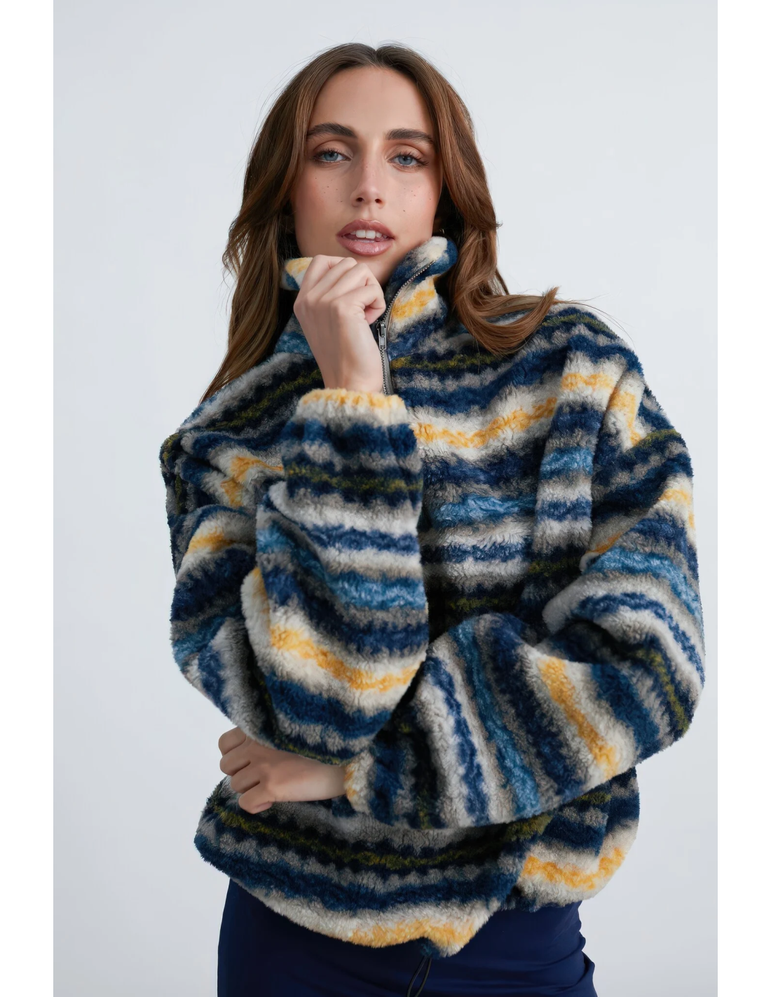 Πολύχρωμο ριγέ φλις πουλόβερ