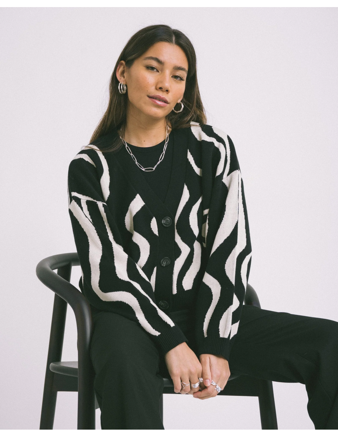 24COLOURS CARDIGAN BLACK WHITE -41209a