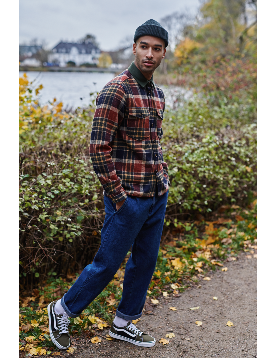 Anerkjendt Aklion Check Overshirt in Deep Forest - 900247