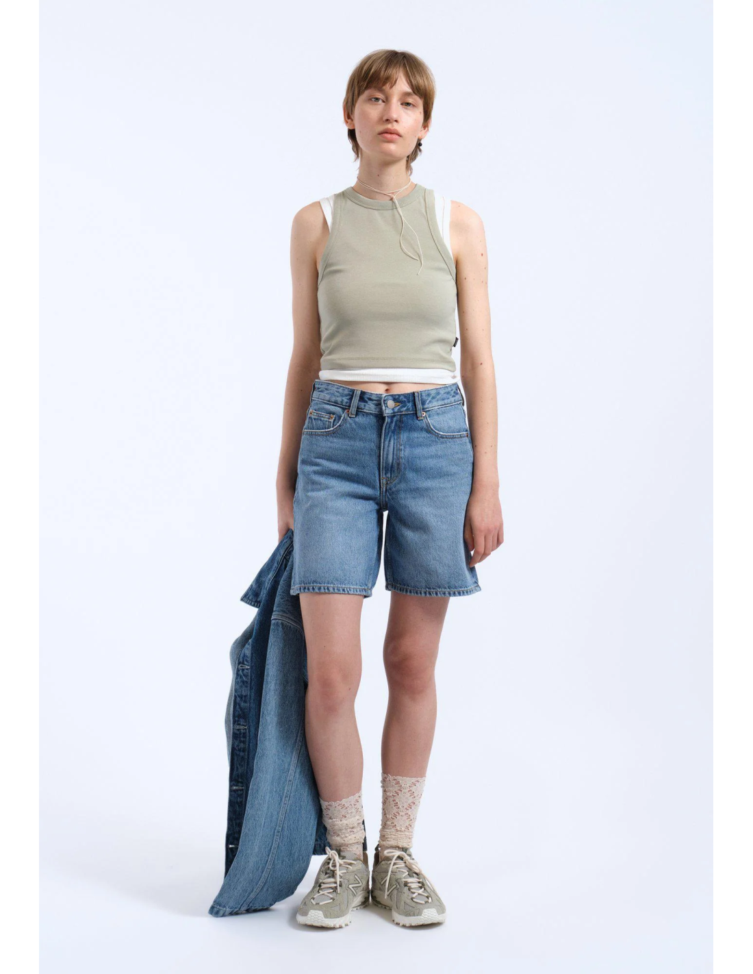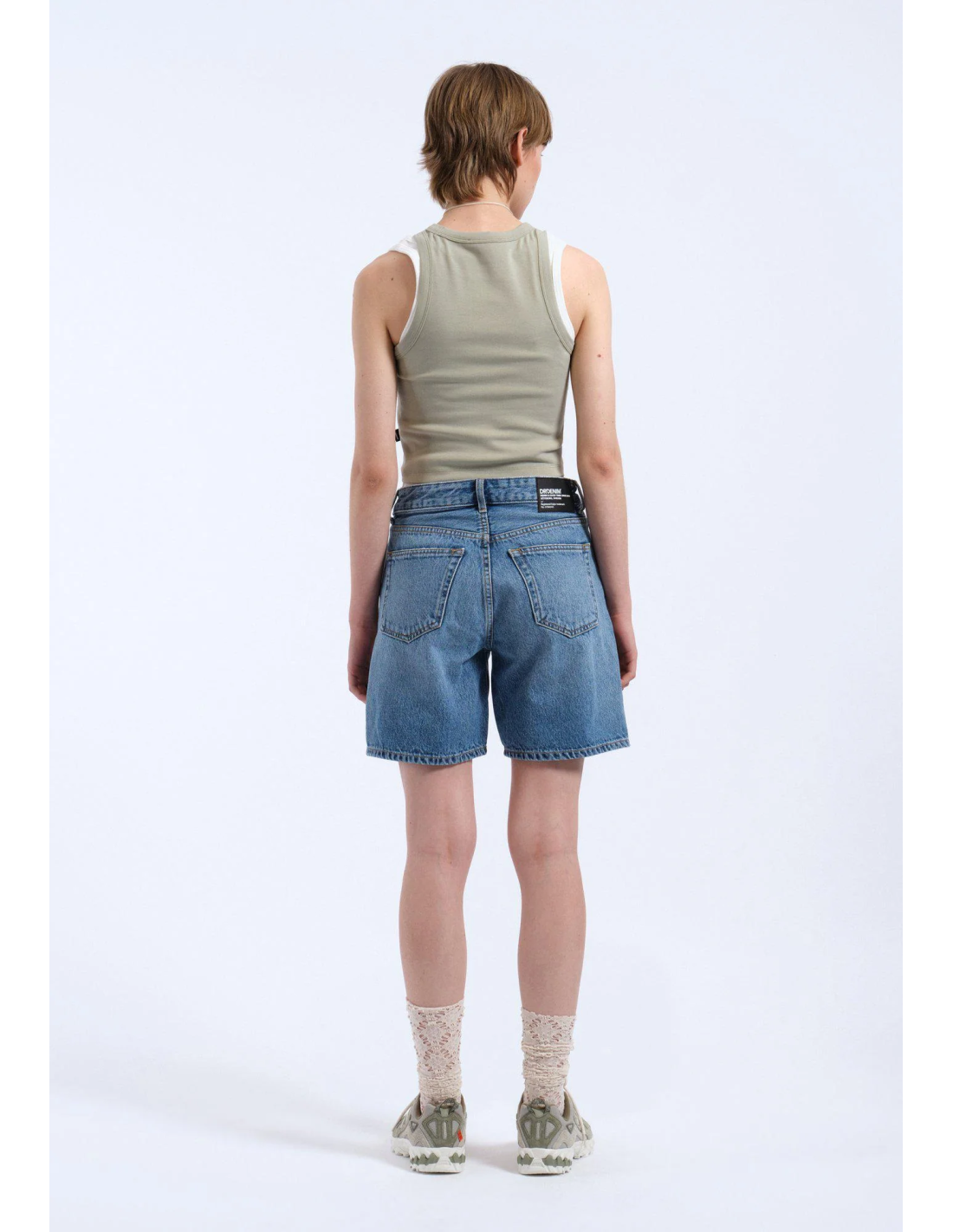 Αυτό το σορτς είναι φτιαγμένο από τζιν ελαστικό άνεσης, με 99% βαμβάκι και 1% ελαστάνη. Το ύφασμα προσφέρει μέτρια ευελιξία, παρέχοντας μια άνετη εφαρμογή που κινείται μαζί σας, ενώ διατηρεί τη δομή και την αίσθηση μιας άκαμπτης, κλασικής εμφάνισης τζιν.