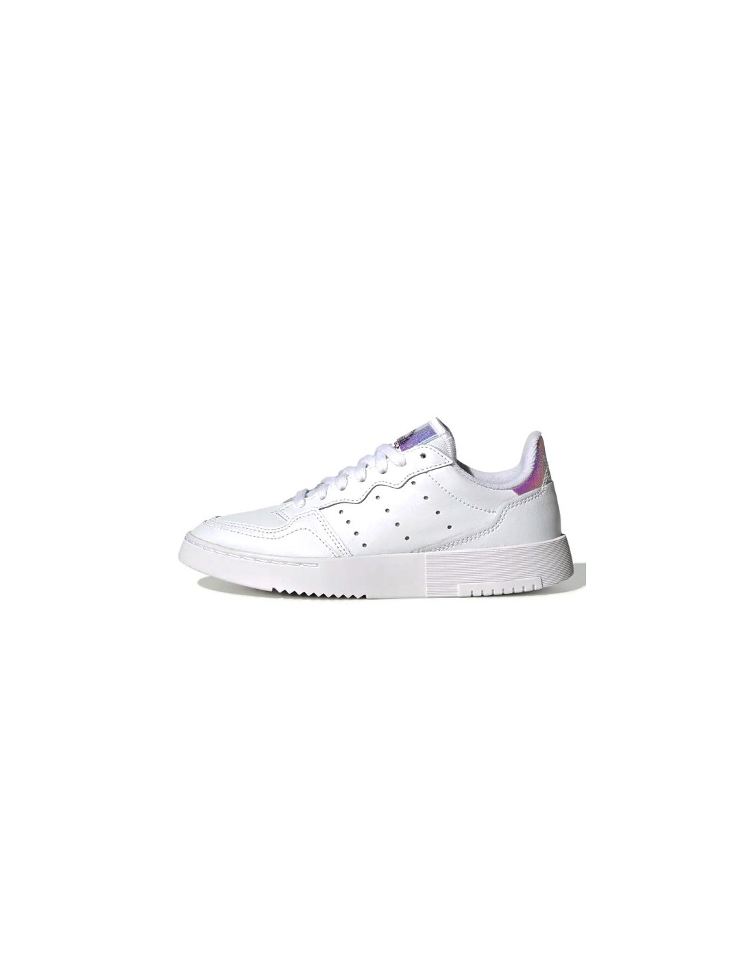 Minimal ναι, βαρετά ποτέ. Αυτά τα παιδικά Supercourt μεταμορφώνουν το tennis στυλ με street λεπτομέρειες. Το μαλακό επάνω μέρος από λευκό δέρμα αφήνει τις ιριδίζουσες λεπτομέρειες να ξεχωρίζουν. Οι τρεις διάτρητες ρίγες της adidas θυμίζουν διακριτικά το παρελθόν της adidas.