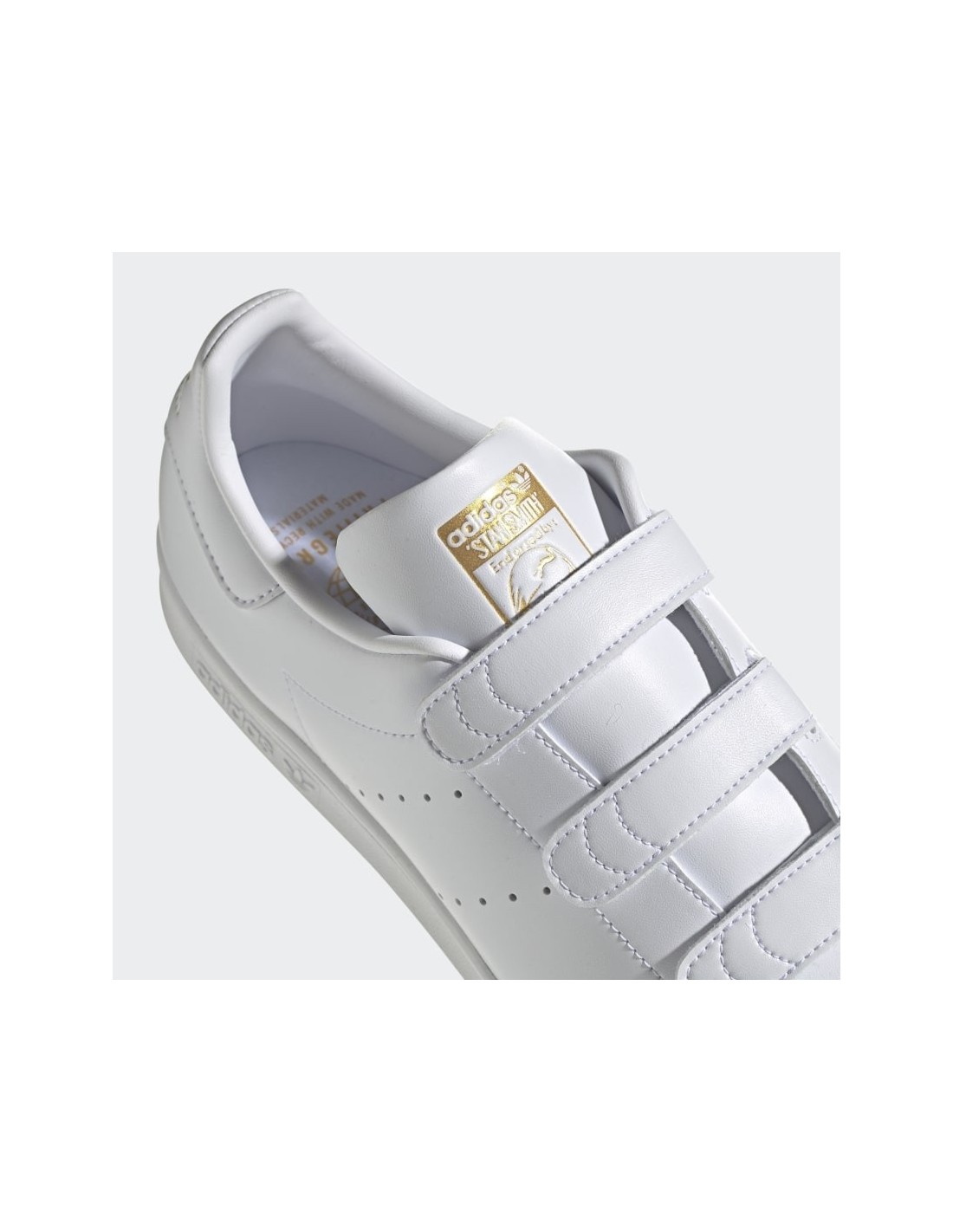 Σού χαρίζουν εύκολη εφαρμογή. Και αγαπούν και τον πλανήτη. Αυτά τα adidas Stan Smith Shoes από ανακυκλωμένα υλικά είναι μέρος της δέσμευσης της adidas να βάλει τέλος στα πλαστικά απορρίμματα. Έχουν 100% vegan κατασκευή, και εξωτερική σόλα κατασκευασμένη από ανακυκλωμένο καουτσούκ, ανανεώνοντας το εμβληματικό στυλ. Τα αυτοκόλλητα λουράκια σού επιτρέπουν να τα φοράς και να τα βγάζεις στη στιγμή. Αυτά τα παπούτσια κατασκευάζονται χωρίς υλικά ή συστατικά ζωικής προέλευσης, αλλά από Primegreen, μια σειρά από ανακυκλωμένα υλικά υψηλών επιδόσεων.