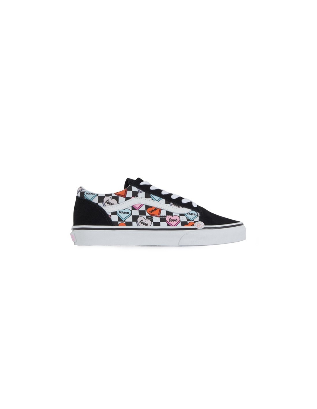 Featuring a checkerboard and heart print inspired by the iconic Valentine’s Day candy, the Kids Candy Hearts Old Skool pays homage to our heritage while ensuring that this low top, lace-up shoe remains as iconic as ever. It also includes durable suede and canvas uppers, re-enforced toe caps, supportive padded collars, and signature rubber waffle outsoles.
