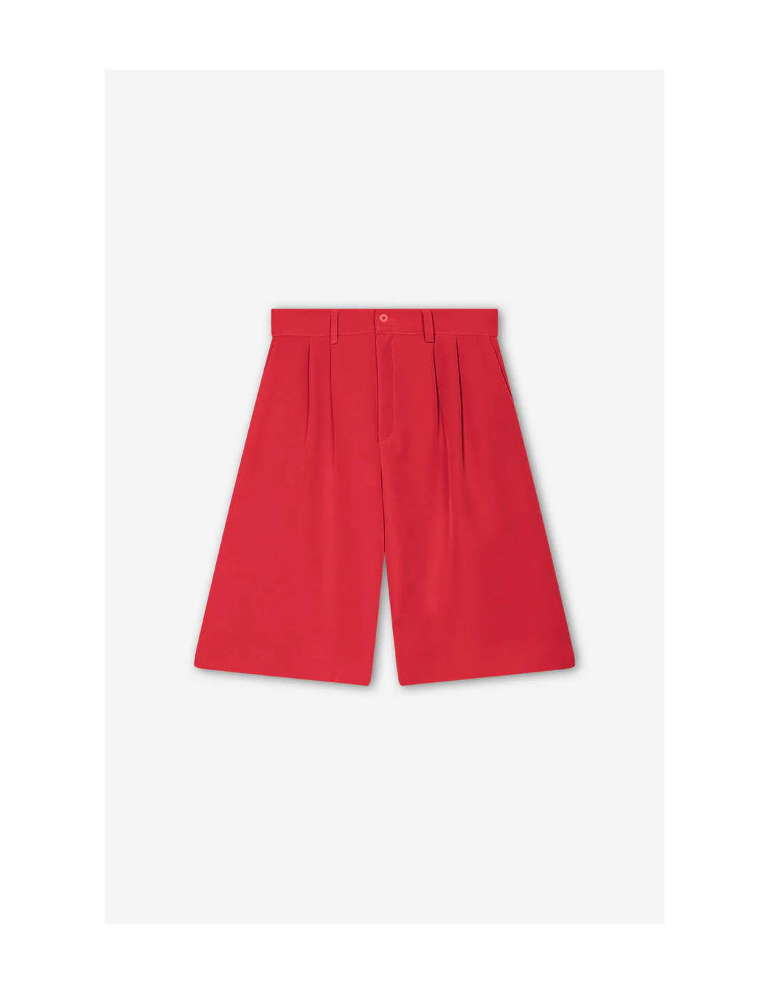 Kaotiko Wide Leg Pinzas Red Bermuda - AQ026-02-K002