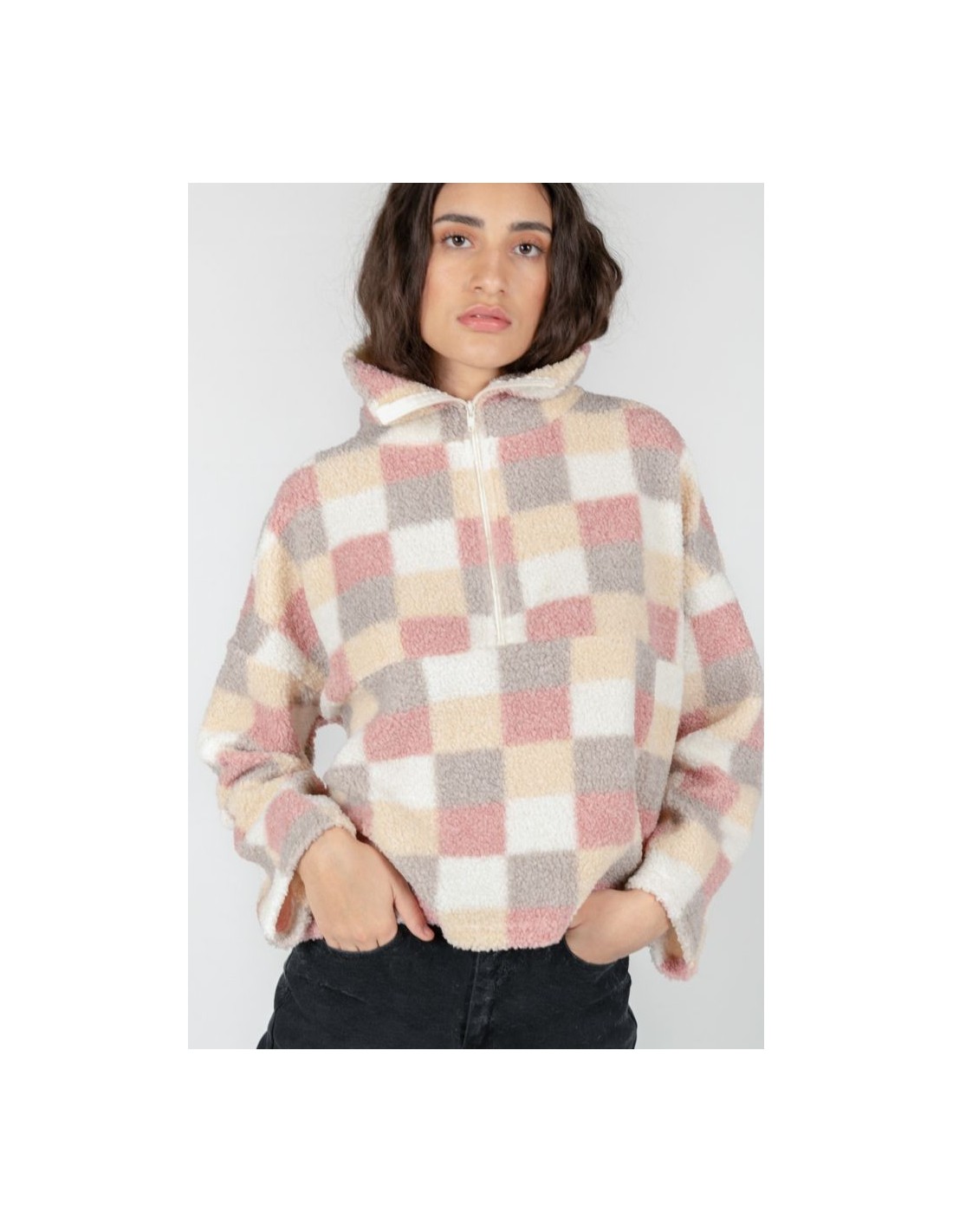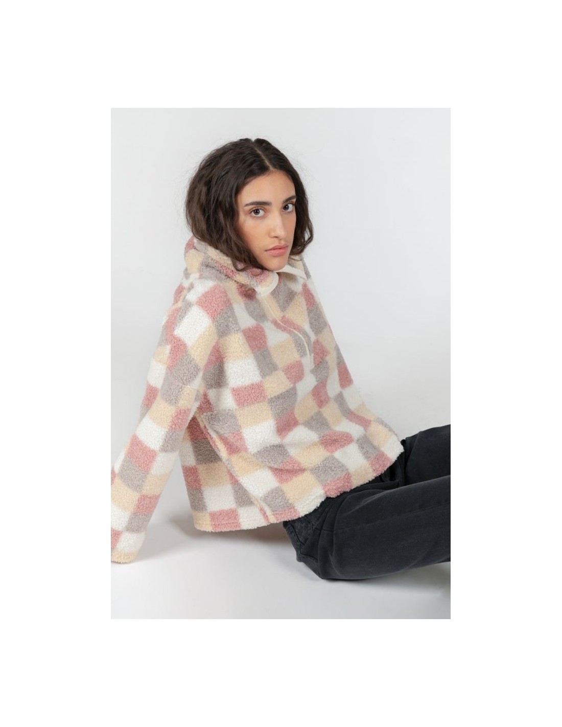 24COLOURS Teddy Checked Shirt in Beige - 50721a