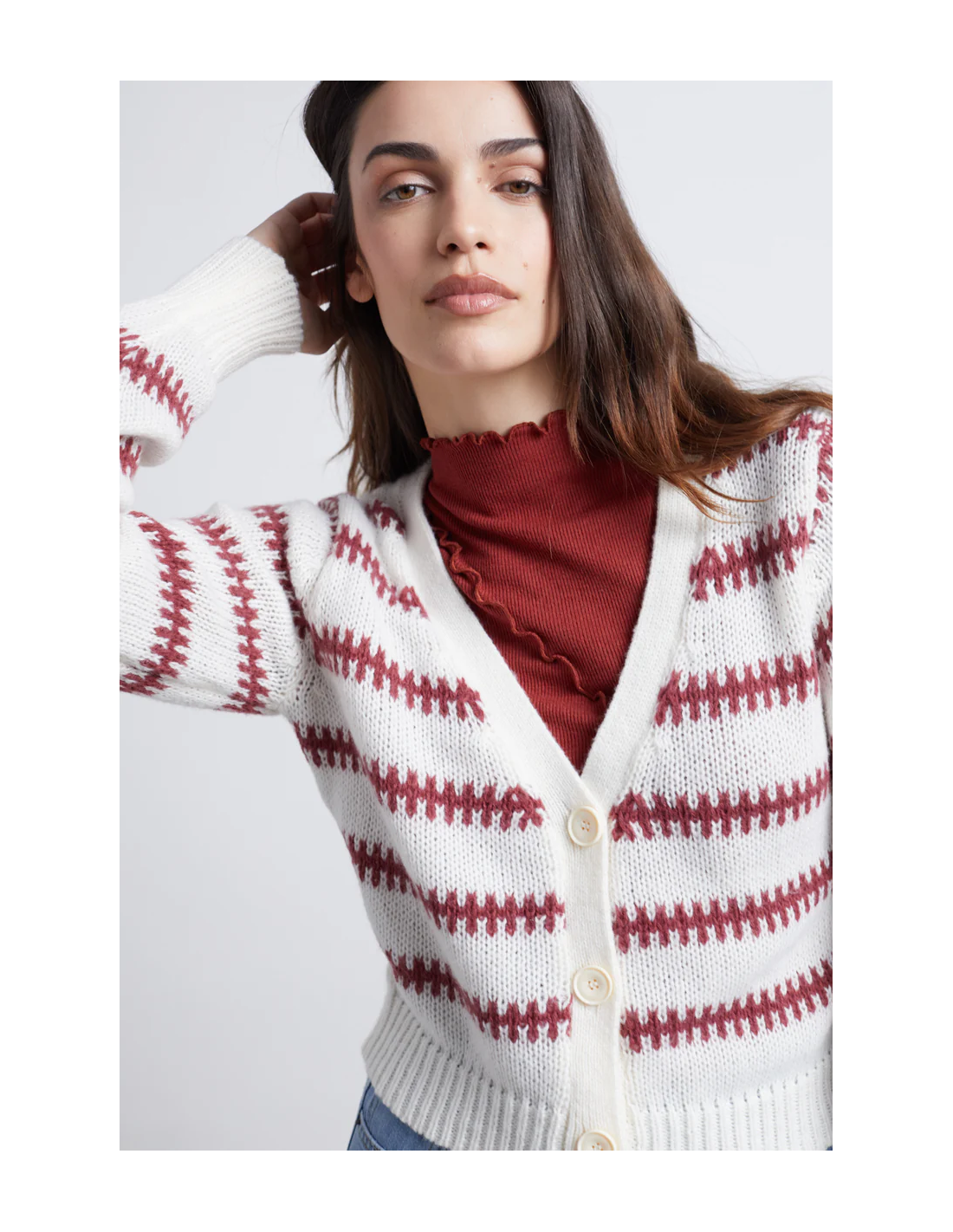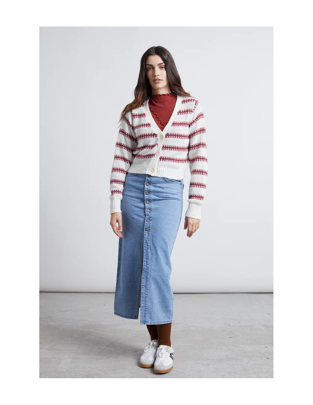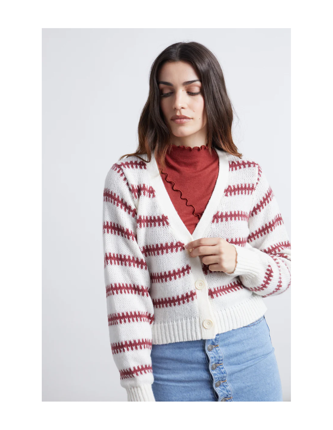 24COLOURS Cardigan White/Red - 41175b