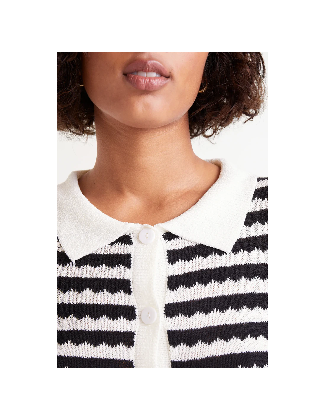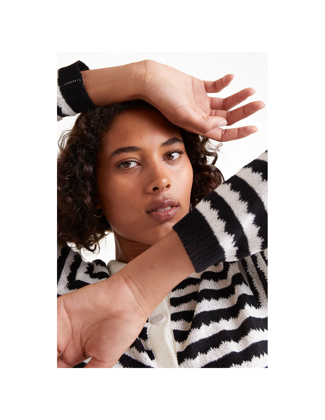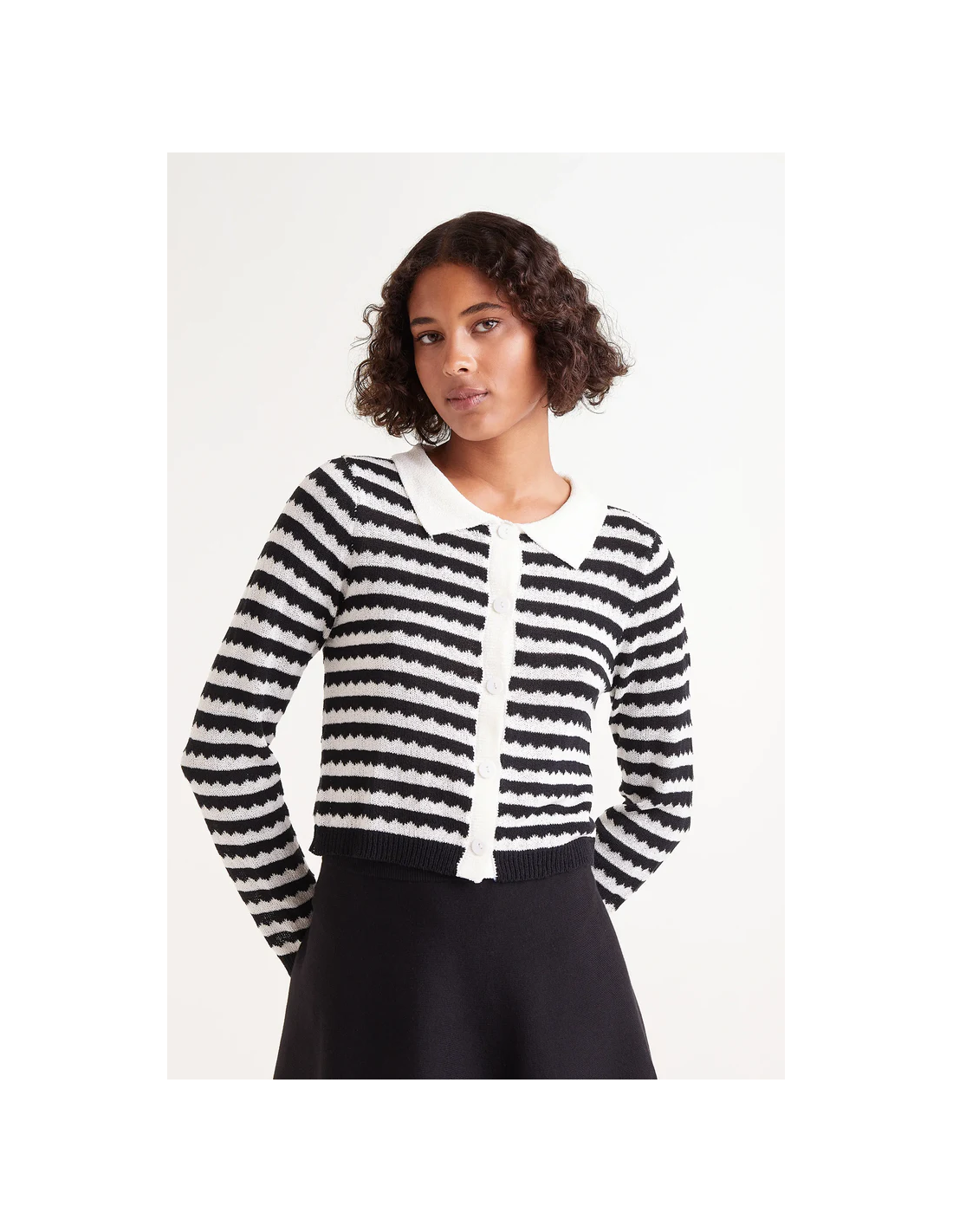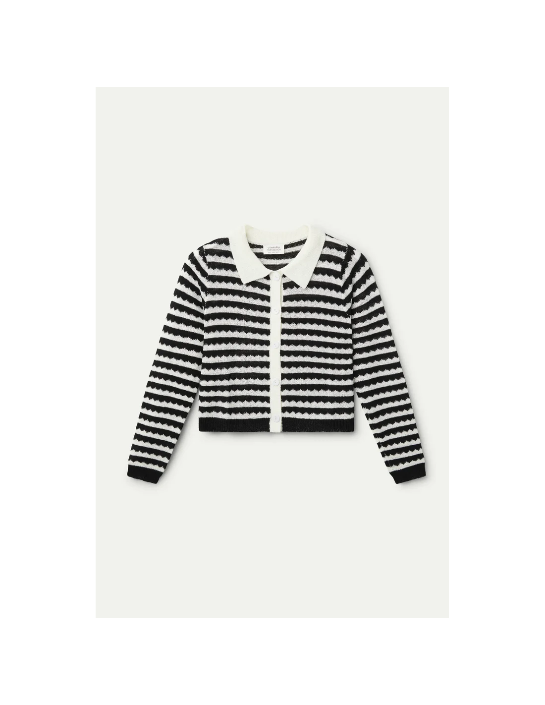 Compania Fantastica Black Striped Polo Neck Cardigan - 51C/10329