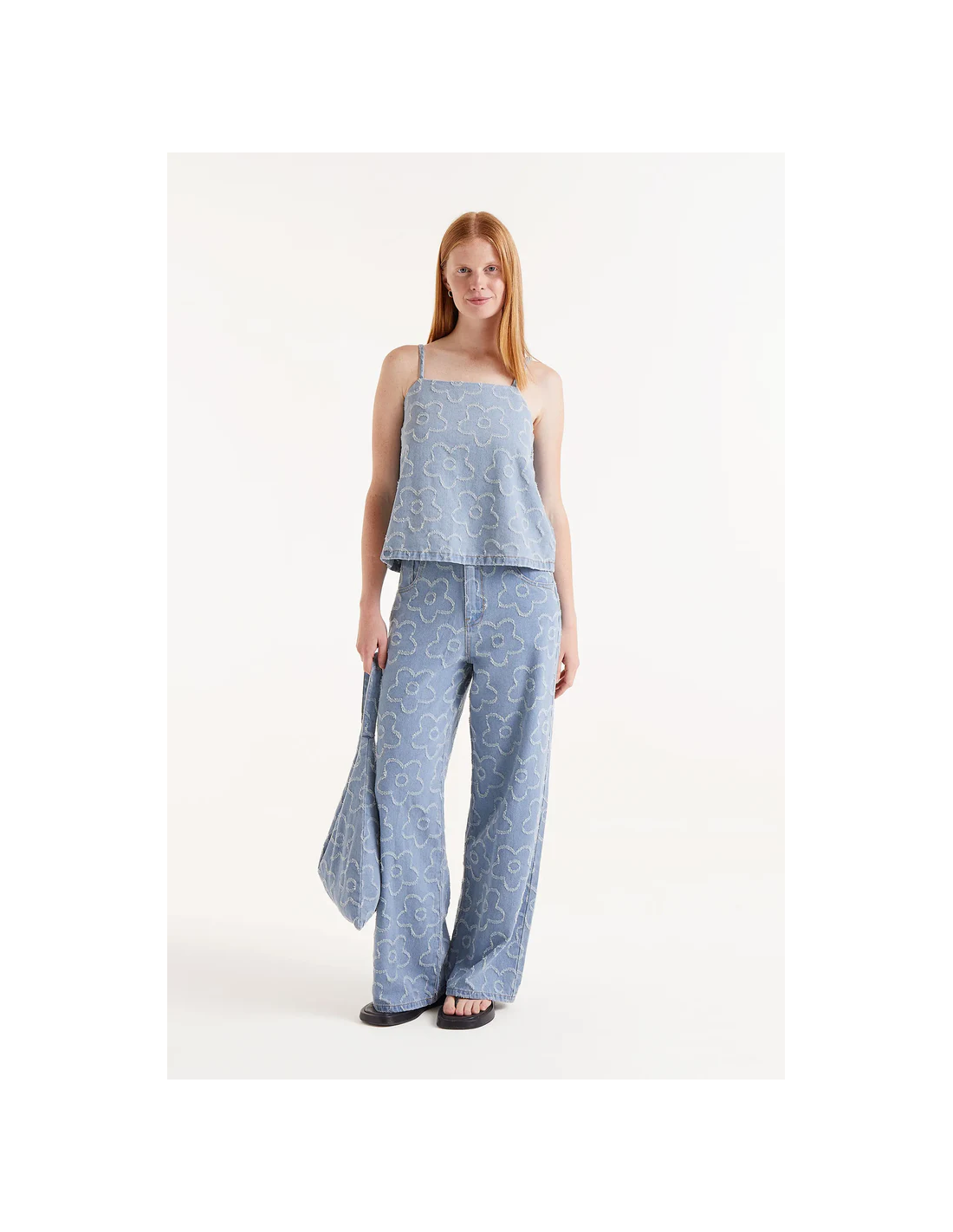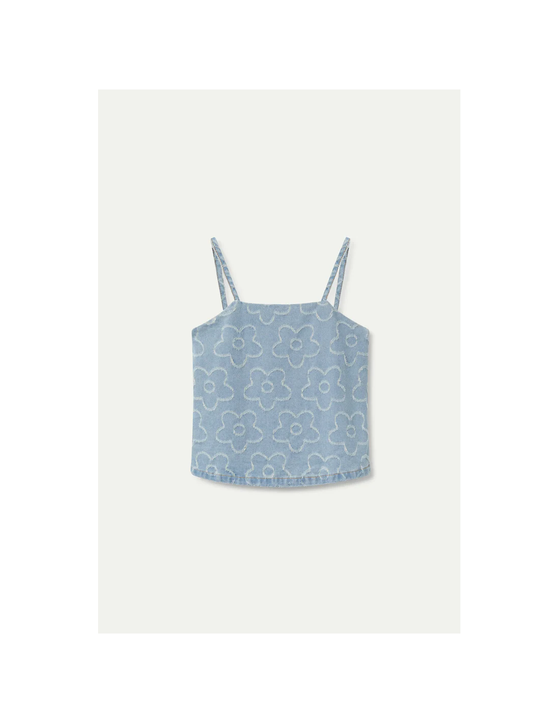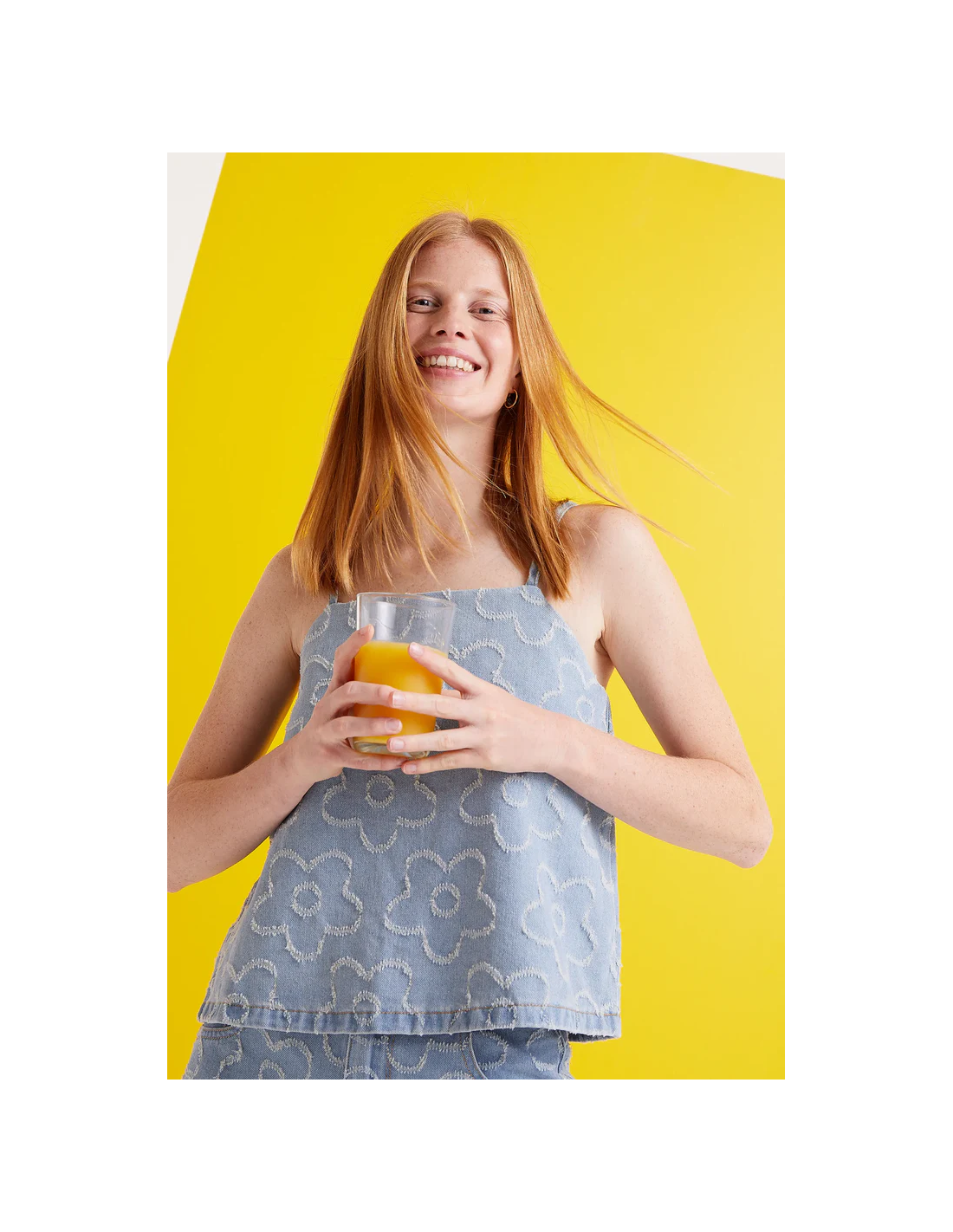 Compania Fantastica Denim top with woven flowers - 51C/11027