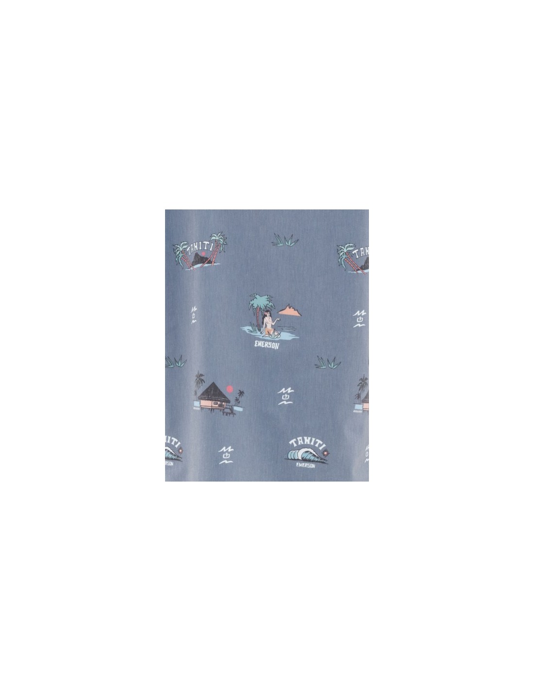 EMERSON ΑΝΔΡΙΚΟ ΕΛΑΣΤΙΚΟ ΚΟΝΤΟΜΑΝΙΚΟ ΠΟΥΚΑΜΙΣΟ ΜΕ ΤΡΟΠΙΚΟ ΜΟΤΙΒΟ MIDNIGHT BLUE-221.EM61.03