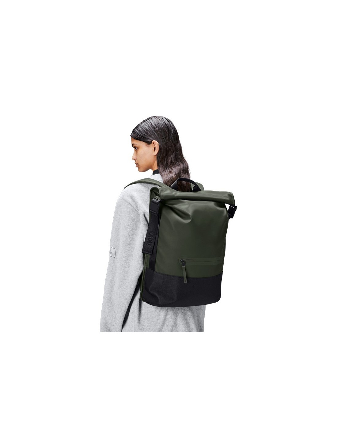 Το σακίδιο πλάτης Trail Rolltop είναι κομμένο σε αδιάβροχο ύφασμα PU με την υπογραφή της Rains, σχεδιασμένο για αντοχή, ανθεκτικότητα και απαλή αίσθηση.