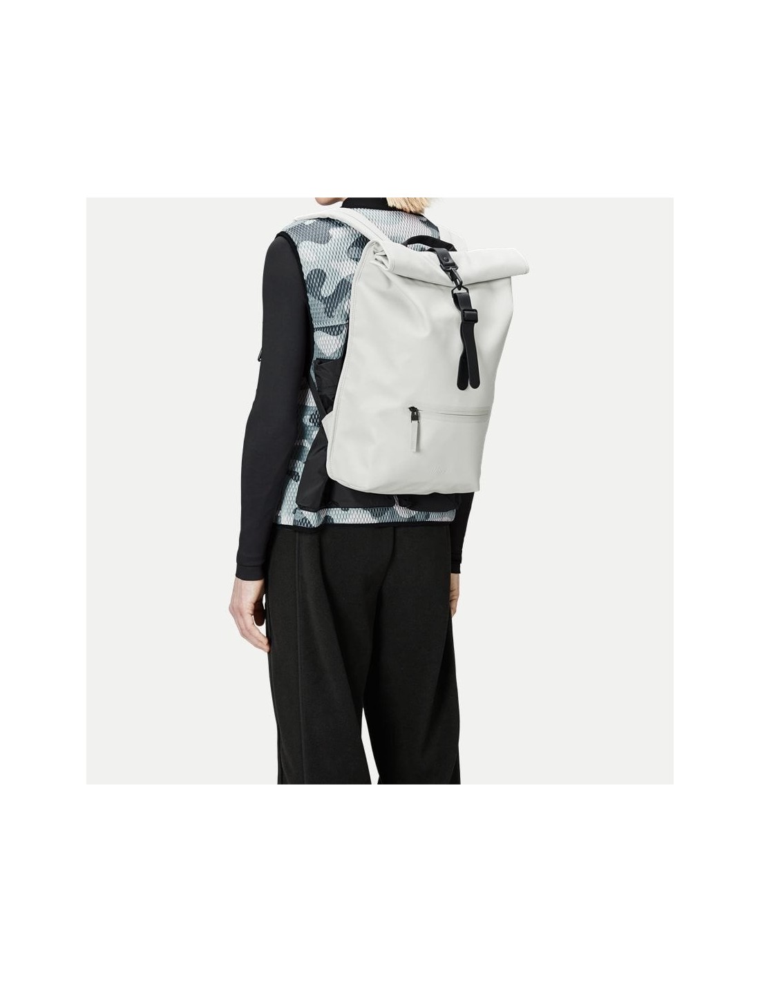 Το Rolltop Rucksack είναι κομμένο από το αδιάβροχο PU ύφασμα που φέρει την υπογραφή της Rains, σχεδιασμένο για αντοχή στη μεταφορά, ανθεκτικότητα και απαλή αίσθηση.