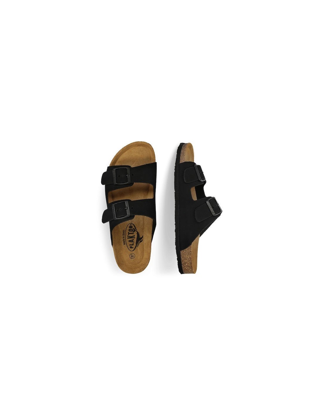 Plakton Eva NOBUCK Δερμάτινα Γυναικεία Σανδάλια Ανατομικά σε Μαύρο Χρώμα - 180010-negro