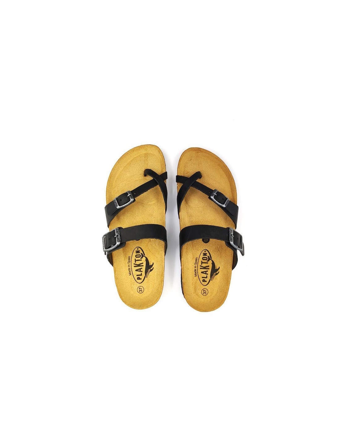 Plakton Eva APURE Δερμάτινα Γυναικεία Σανδάλια Ανατομικά σε Μαύρο Χρώμα - 181032-negro
