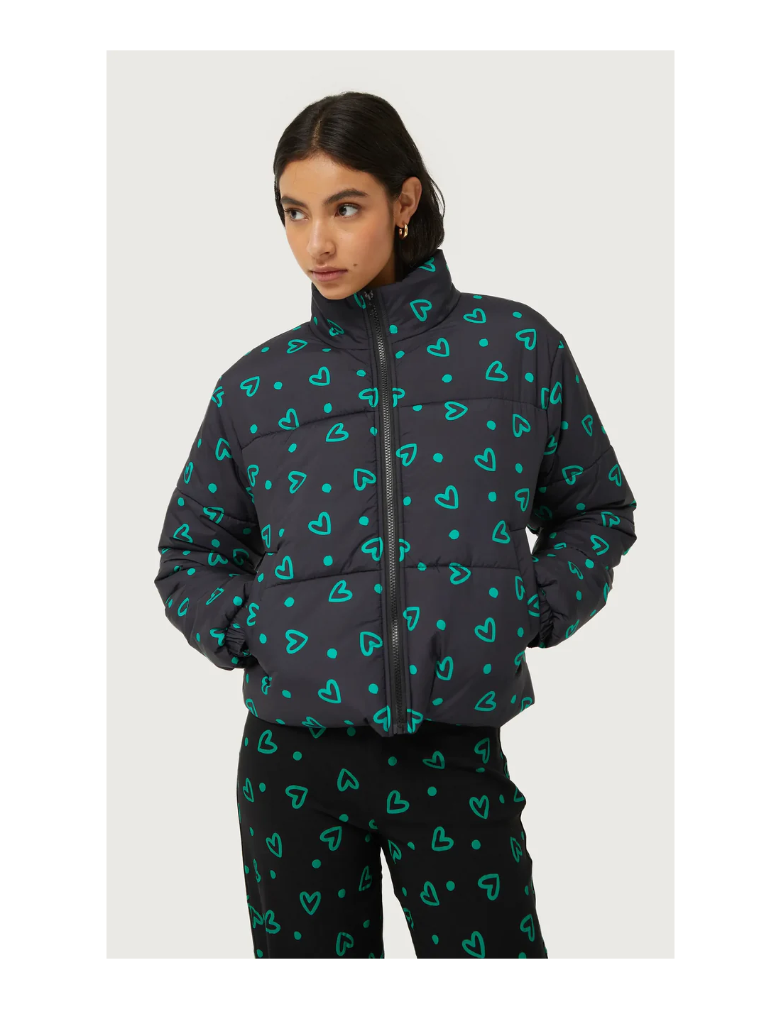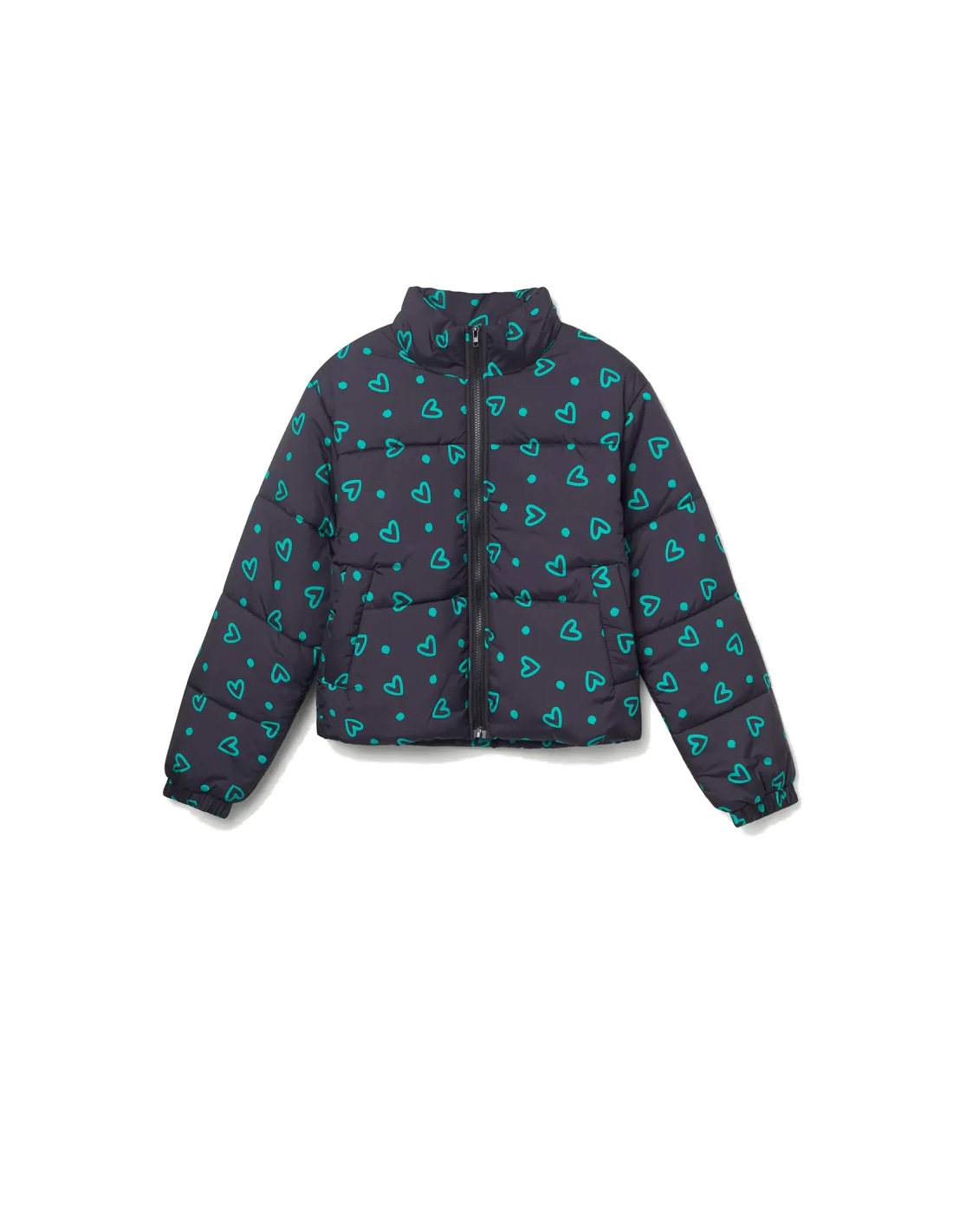 Αυτό το παιχνιδιάρικο puffer jacket από την Compania Fantastica διαθέτει διασκεδαστική καρδιά και πουά στάμπα, προσθέτοντας μια ιδιότροπη πινελιά στη χειμερινή σας γκαρνταρόμπα. Με τη ζεστή επένδυση, τον ψηλό γιακά και το μπροστινό μέρος με φερμουάρ, είναι ιδανικό για να διατηρείται άνετα τις πιο κρύες μέρες. Η χαλαρή εφαρμογή και οι ελαστικές μανσέτες εξασφαλίζουν άνεση και προστασία από τον άνεμο. Μια κομψή και λειτουργική επιλογή για να φωτίσει κάθε casual εμφάνιση.