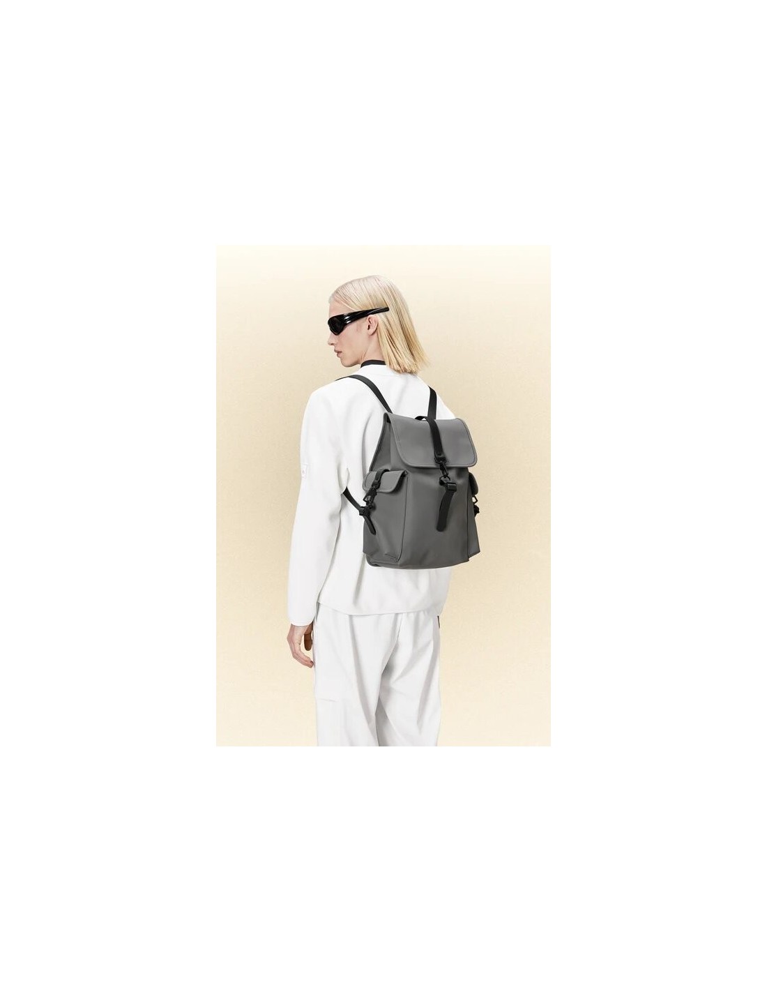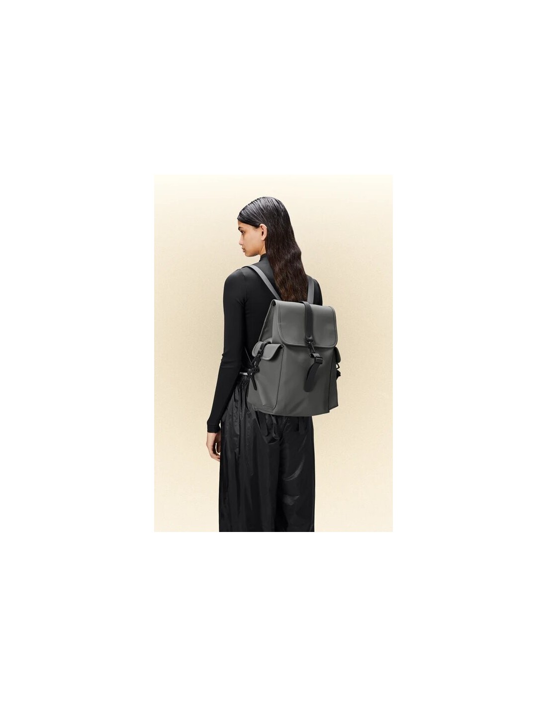 Το αδιάβροχο σακίδιο πλάτης κατασκευάζεται από αδιάβροχο υλικό PU της Rains και μπορεί να ασφαλιστεί στο πάνω μέρος με ένα κούμπωμα κάτω από το πτερύγιο για να διατηρείται το περιεχόμενο στεγνό. Διαθέτει μια μοναδική κύρια θήκη με επένδυση, που προσφέρει άφθονο χώρο.