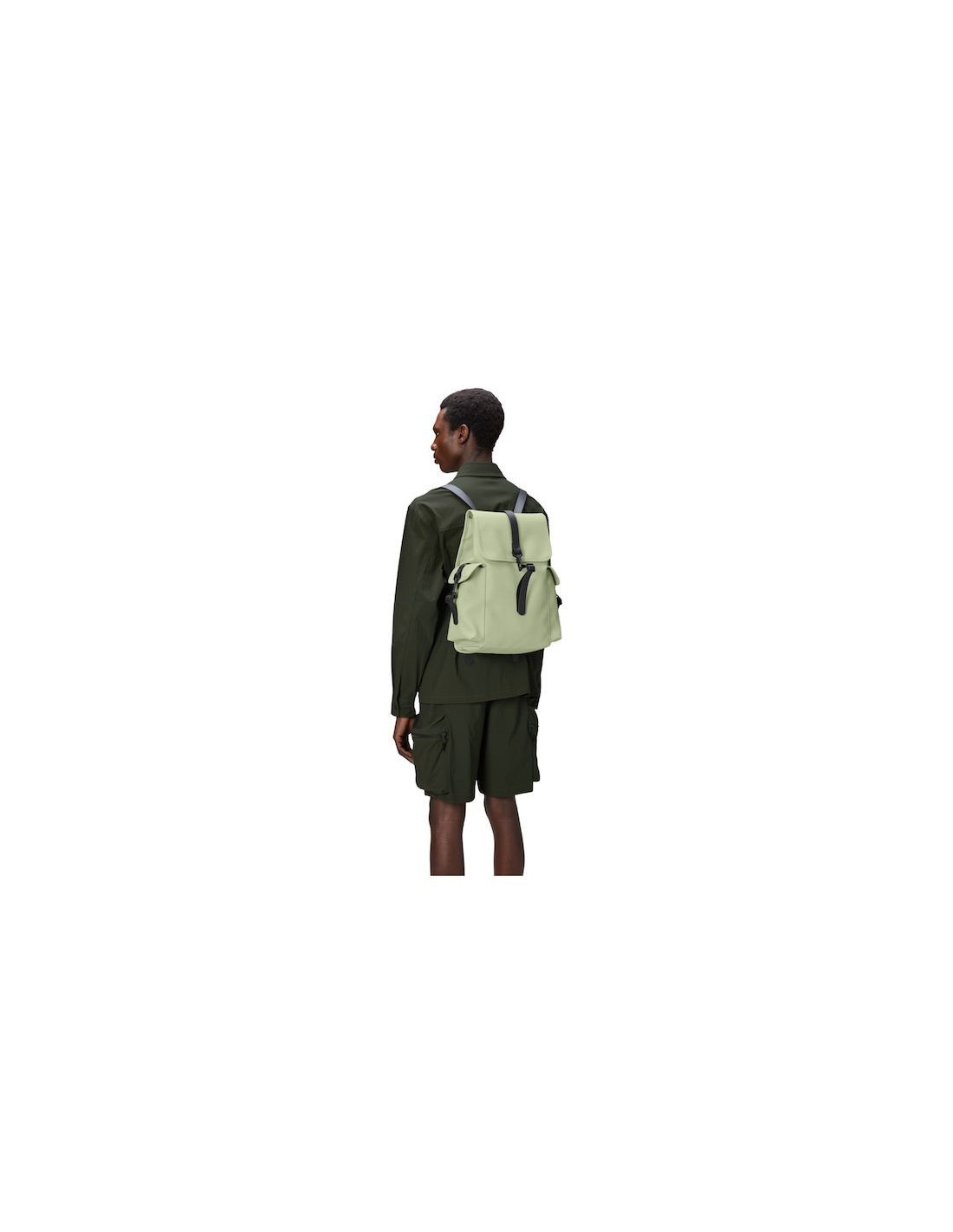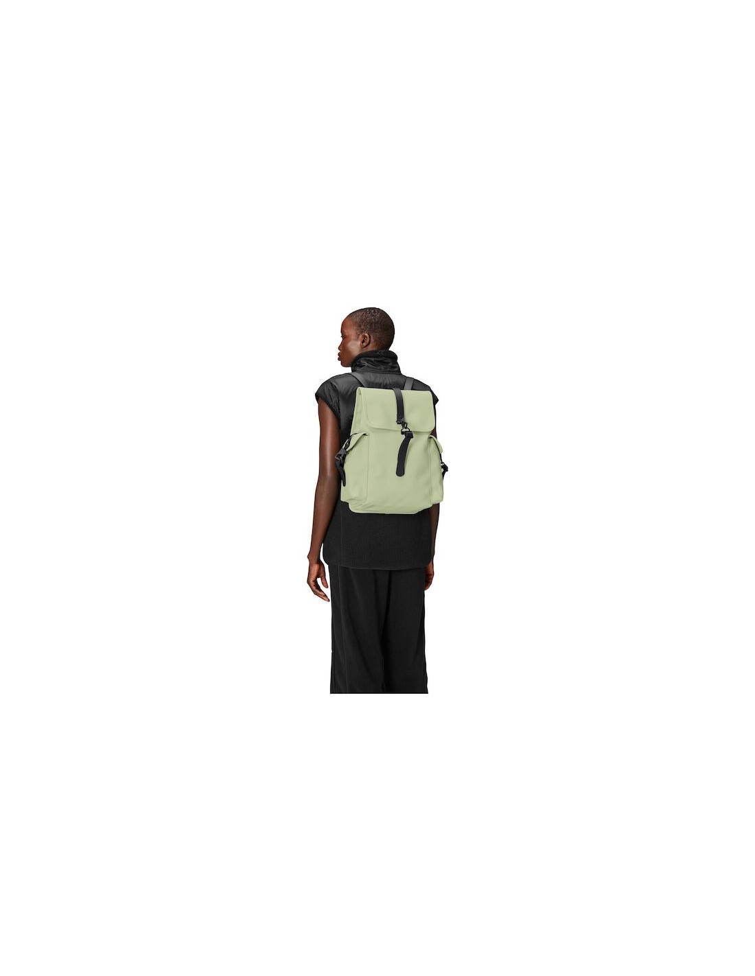 Το αδιάβροχο σακίδιο πλάτης κατασκευάζεται από αδιάβροχο υλικό PU της Rains και μπορεί να ασφαλιστεί στο πάνω μέρος με ένα κούμπωμα κάτω από το πτερύγιο για να διατηρείται το περιεχόμενο στεγνό. Διαθέτει μια μοναδική κύρια θήκη με επένδυση, που προσφέρει άφθονο χώρο.