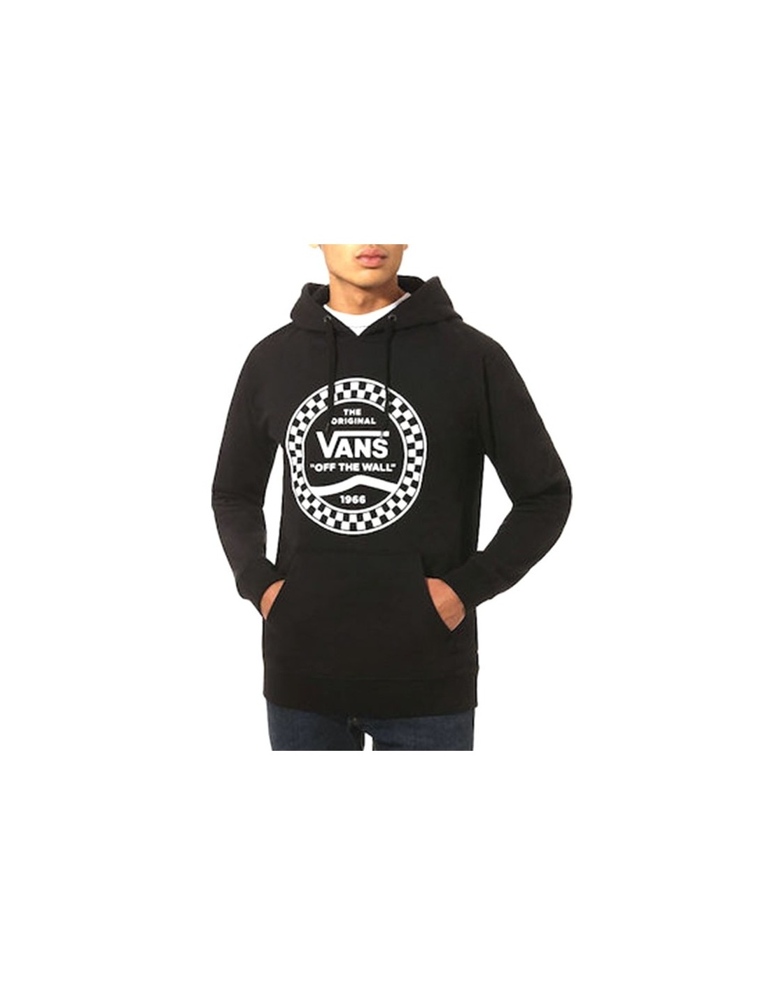 The Vans Checkered Side Stripe Front Hoodie is a pullover with long sleeves, a front pouch pocket and the Vans logo featuring a checker pattern to the front.